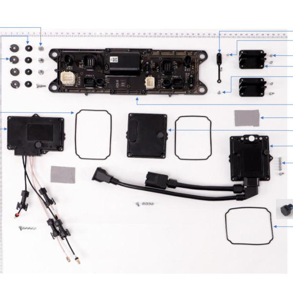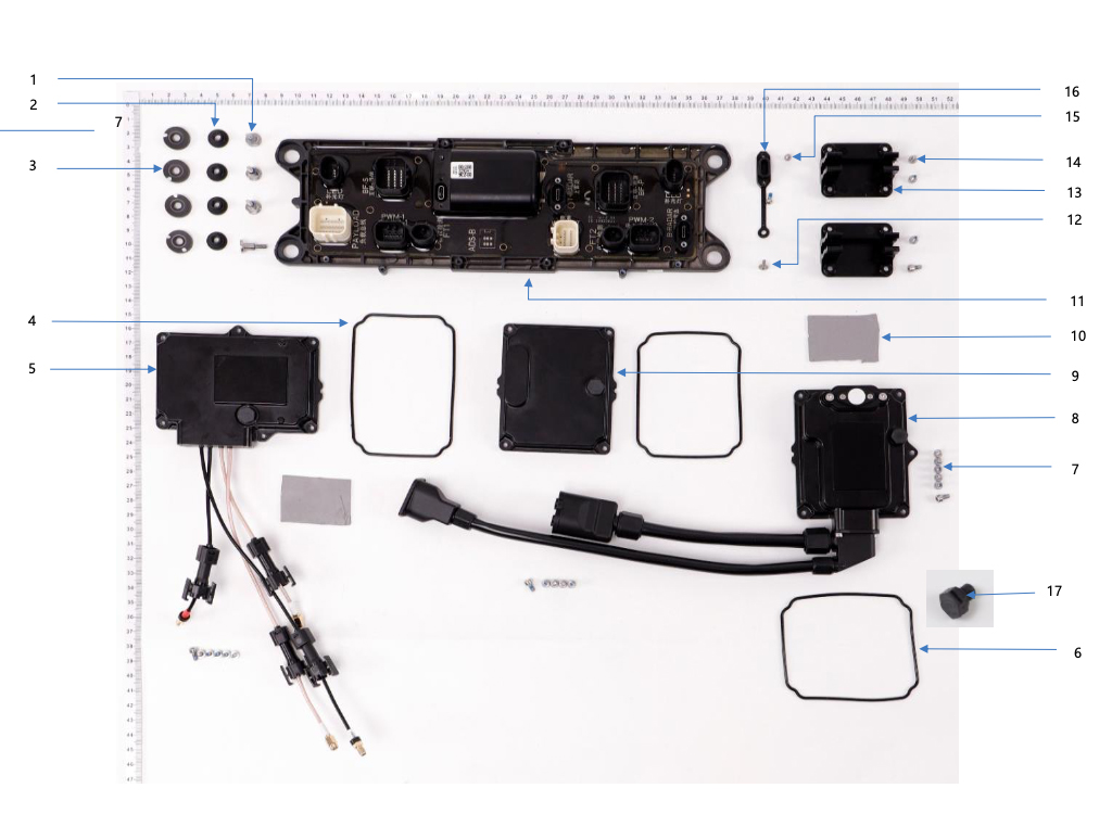T40 Cable Distribution Board | L1. M30-HC01450080-100020-5103-Y, L2. Damping Pad A, L3. Damping Pad B, L4. RF Sealing Ring, L5. RF Board, L6. Aerial-Electronics Module and Spraying Module Sealing Ring, L7. Screw M30-HC060060-55-85, L8. Aerial-Electronics Module (CN), L8. Aerial-Electronics Module (H), L8. Aerial-Electronics Module (L), L9. Spraying Module, L10. Aerial-Electronics Module RF Thermal Conductive Pad, L11. Cable Distribution Board Module, L12. M20-HPW00600060-065016-5103-Y_02, L13. RF Cable Clip, L14. Screw M30-HC060060-55-85, L15. Screw M25-HC00780040-040020-5108-N, L16. Type-C Port Waterproof Cover, L17. Vent Trap |
