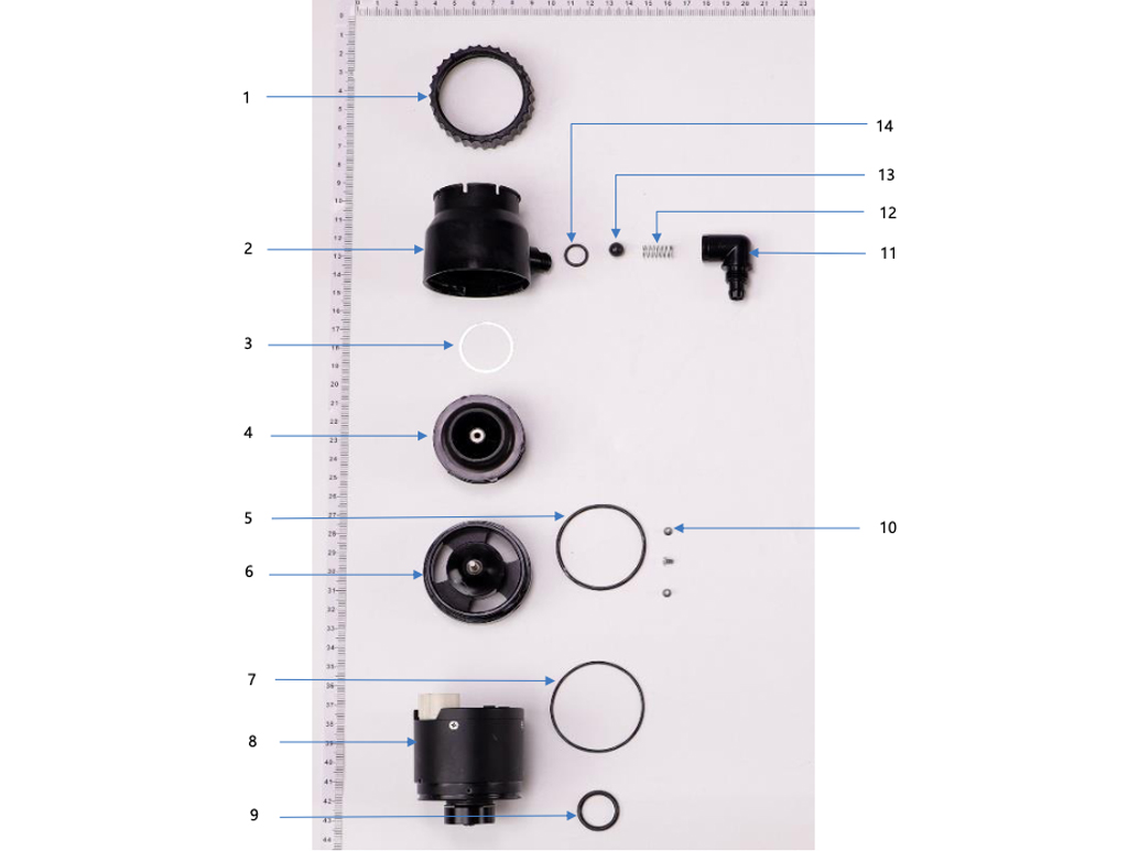 T40 Impeller Pump | N1. Water Outlet Rotation Cover, N2. Impeller Pump Shell, N3. #N/A, N4. Impeller, N5. Pump Sealing Ring, N6. Impeller Pump, N7. Motor Sealing Ring, N8. Impeller Pump Motor, N9. Centrifugal Valve Rubber Pad, N10. M25-PF00500035-047015-5103-N, N11. Impeller Pump Curving Connector, N12. Spring, N13. Sealing Ball, N14. Pump_Connector Sealing Ring, N10~14&1 ~6. Impeller Pump Module |