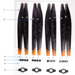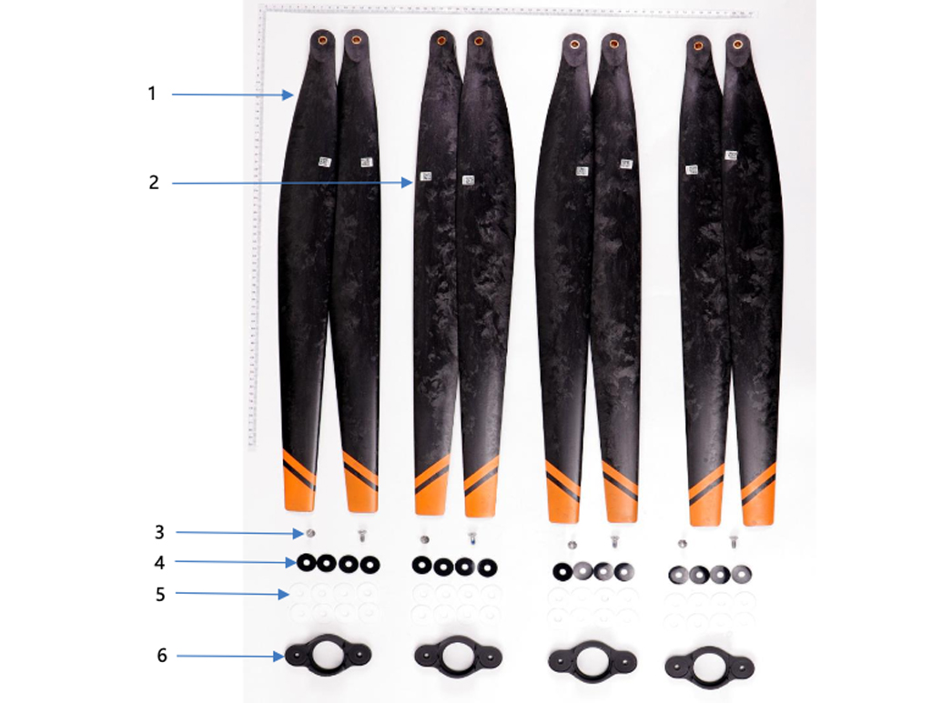 Q1. Lower Propeller (CCW), Q2. Lower Propeller (CW), Q3. M50-HF01430102-116041-0003-Y, Q4. Rubber Pad, Q5. Teflon Pad, Q6. Propeller Clamp